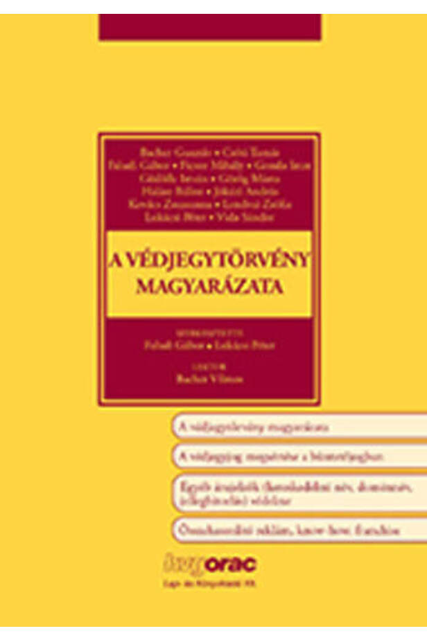 The explanation of the trademark law is the first work for many decades that describes the domestic legal regulation of a trademark with the need for completeness, a gap-filling work in this extremely important field of intellectual property law. Previously, there was no explanation written with theoretical rigor, but also discussing practical experience, which would have undertaken a commentary presentation of the topic. Our book fully processes domestic trademark law in the light of EU, domestic administrative and judicial practice. In addition to commenting on trademark law, the volume also discusses the criminal and customs consequences of trademark infringement. The work, enriched with EU legal rules, official, preliminary and case-by-case court decisions, also serves as a guide in the daily life of Hungarian small, medium and large enterprises. The commentary also covers topics that are equally vital for businesses: the authors dedicate separate chapters in the new Civil Code to the re-regulated know-how (protected knowledge), as well as the regulation and practice of the trade name, domain name and franchise agreement. . The members of the authoring community are highly experienced judges, leading specialists of the National Office of Intellectual Property, lawyers with prestigious domestic and international experience, legal advisers, patent attorneys recognized in international industrial property organizations and university lecturers who are deeply involved in industrial property protection. The work should not be absent from the bookshelves of legal advisers of companies and other legal entities, lawyers, patent attorneys, libraries of institutions providing higher legal and economic education, and the courts and authorities concerned.