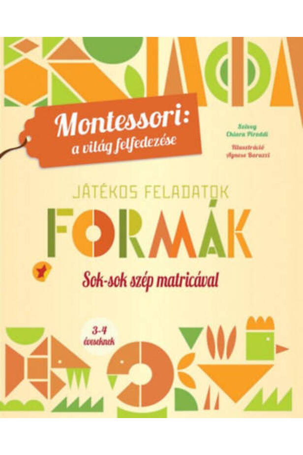 Az ebben a kötetben gyakorlatok és játékok találhatók, amelyeket a Montessori-módszer inspirált kifejezetten azért, hogy a legkisebb gyermekek kognitív képességeit és fejlődését segítsék. A színes, vicces, magukkal ragadó feladatoknak köszönhetően a gyerekek megtanulják felismerni a formákat, és önállóan megtehetik az első lépéseket a világ felfedezésére. A könyvet 3-4 éveseknek ajánljuk.