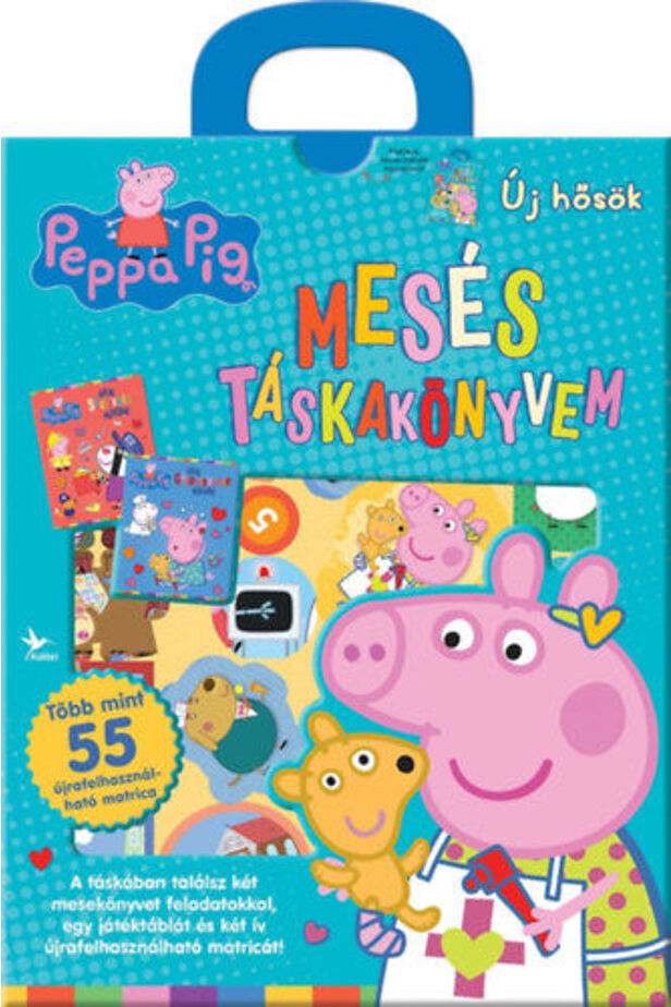 A táskában találsz két mesekönyvet feladatokkal, egy játéktáblát és két ív újrafelhasználható matricát!