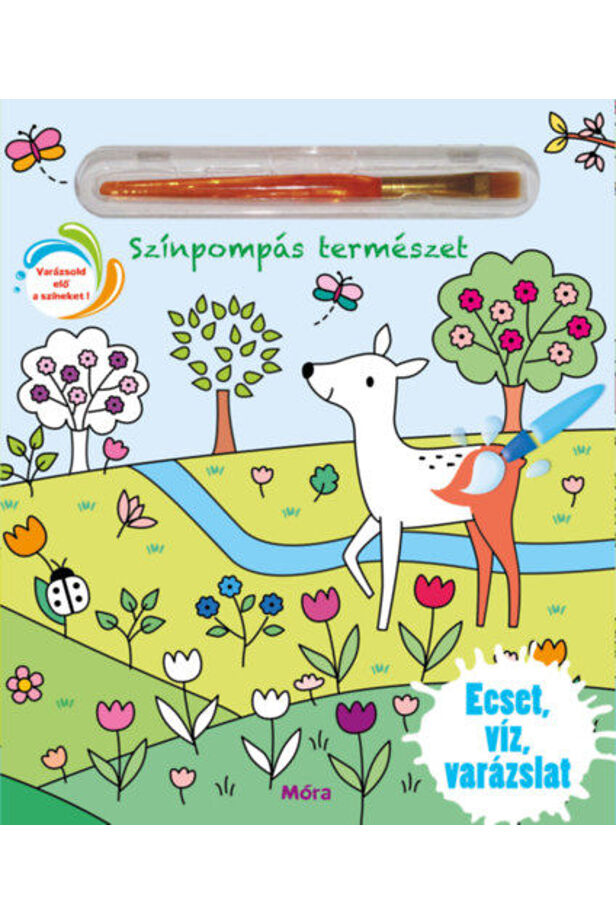 Kíváncsi vagy, melyik a legszebb tavaszi virág, milyen tarka a vízpart, és milyen színekben pompázik az őszi táj? Vizezd be a könyvben található ecsetet, és húzd végig a sörtéit a lapok világos részein! A színek mintegy varázsütésre megjelennek. Miután a papír megszáradt, ismét eltűnnek, és már kezdheted is újra a színezést!
